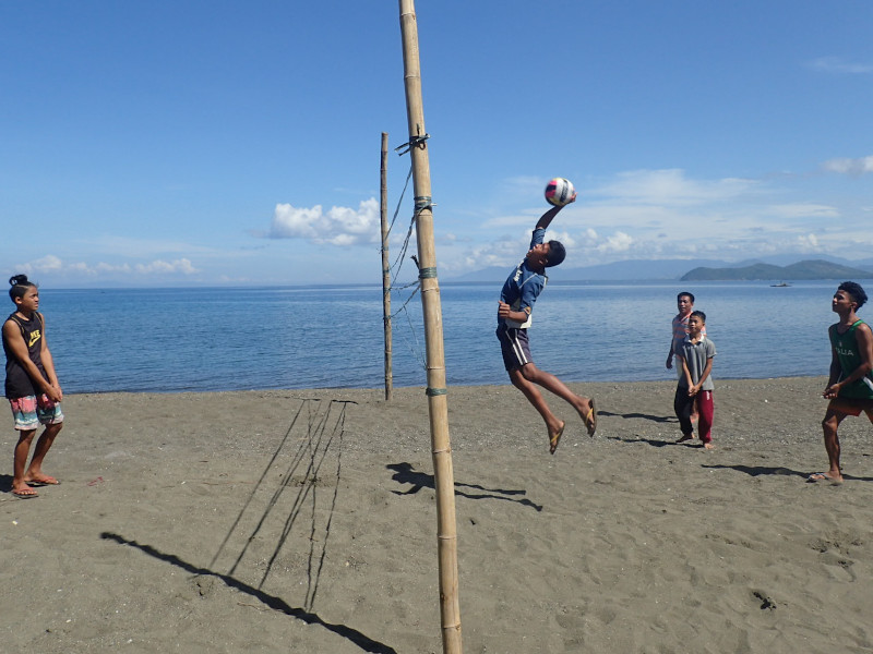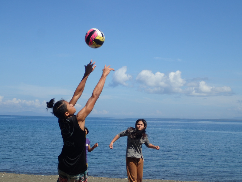 地元の大学生に場所を貸したら、浜辺にバレーのネットを張っていたので