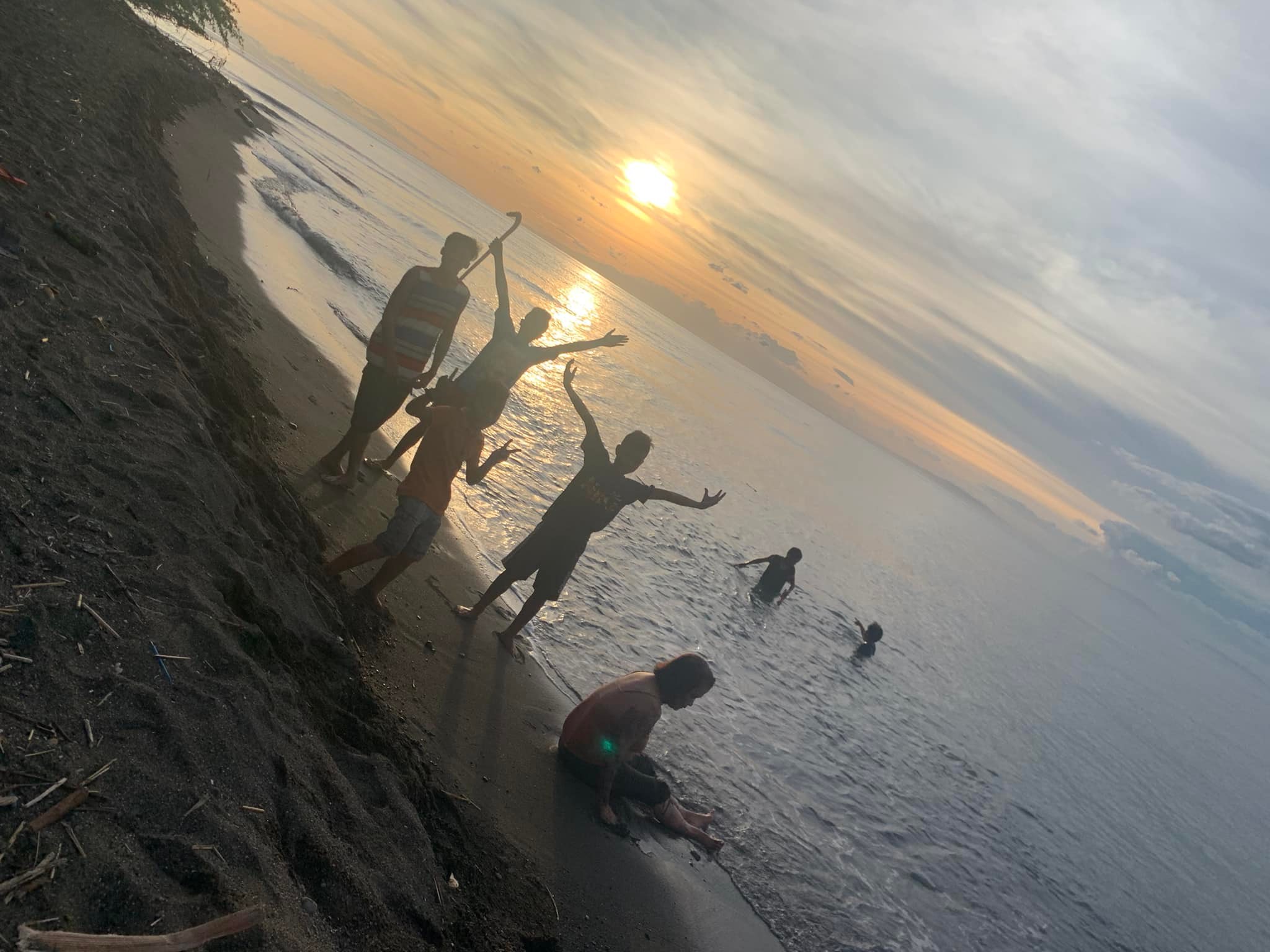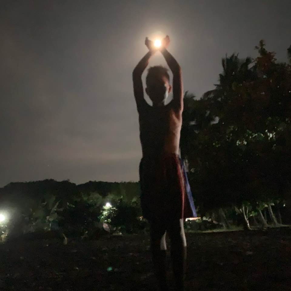 まわりの完全に休日なムードにほだされ、私も昨日今日とのんびり過ごしてます。 昨日は夕方からまた海に行って夕日を眺めながらの海水浴。やはり海はいいですね。 そして日が暮れると、かなり明るい月が出ました。 「こうすると月を持ってるみたいに見えるよね」と ジャンジャンをモデルにジェレミーが撮影して遊んでます。平和だ…。 明日は復活祭。今日はこれからこどもたちと一緒に卵を茹でて、絵を描き、 明日の毎年恒例「卵探し」に備えます。晴れますように!