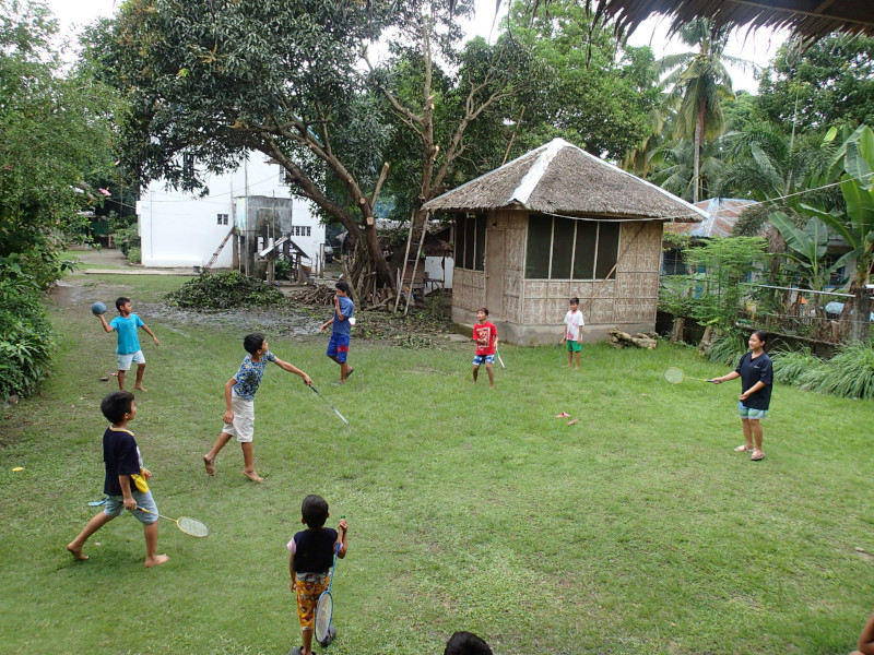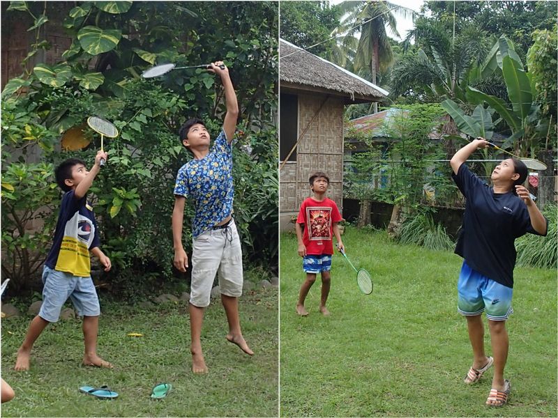 「雨あがりに最適な遊びはコレ!」と、バドミントンを貸してやりました。