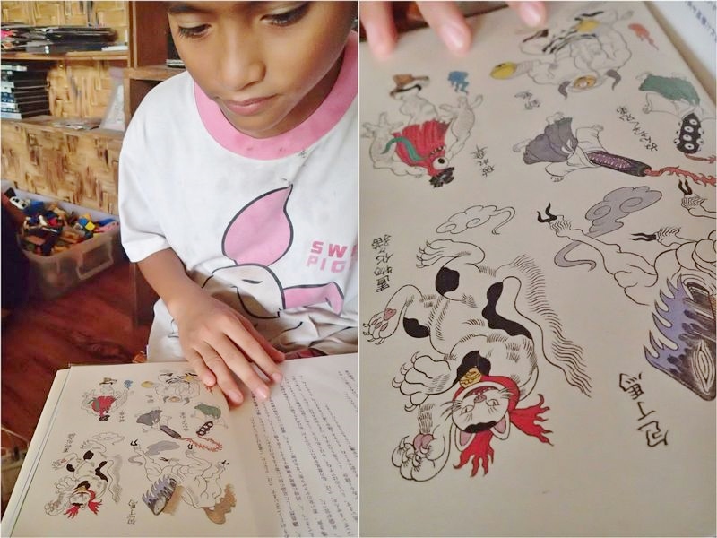 そこに描かれた、ユーモラスなお化けの絵に興味津々でした。よし、じっくり描き給え!