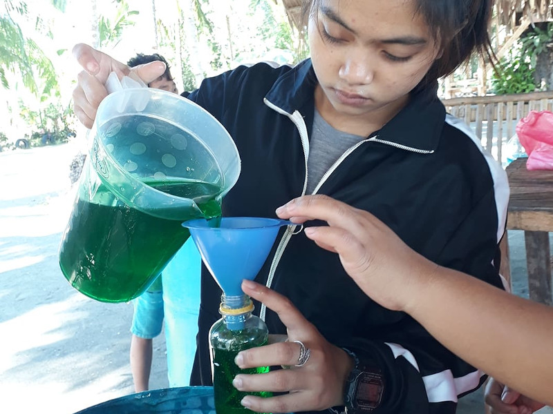 洗って干しておいた使用済みペットボトルに入れていきます。