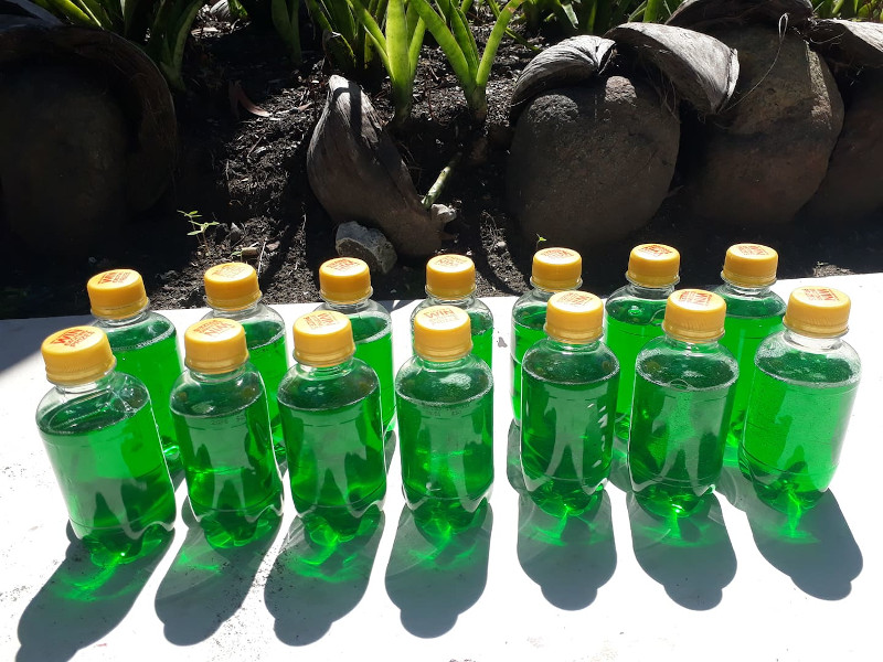1時間くらいすると泡立ちが収まり、緑色のサラサラな液体になりました。