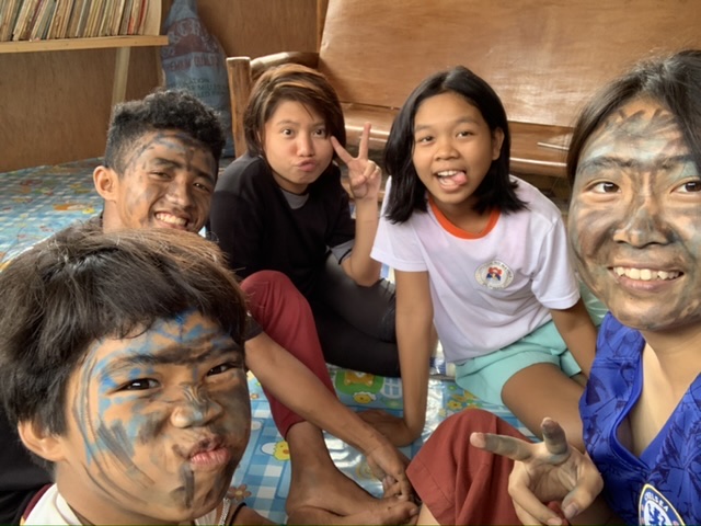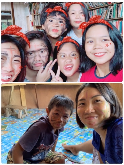 顔に絵を描くのも割と性格がでるので面白いです。女の子たちやリッキーガマイは私を思いやってか遠慮なのかちょろちょろとしか描きませんが、JMやジャンディは容赦なく顔に書き殴ってきます。終わった後はひどい顔!といって笑い合ってから写真撮影。ビジターさんが来たらこれで盛り上がって仲が深まる定番ゲームになるといいなぁ。ちなみに、顔が汚れてない子は服につくのが嫌!とか思春期の女の子にありがちなことを言って参加しませんでした。残念…!