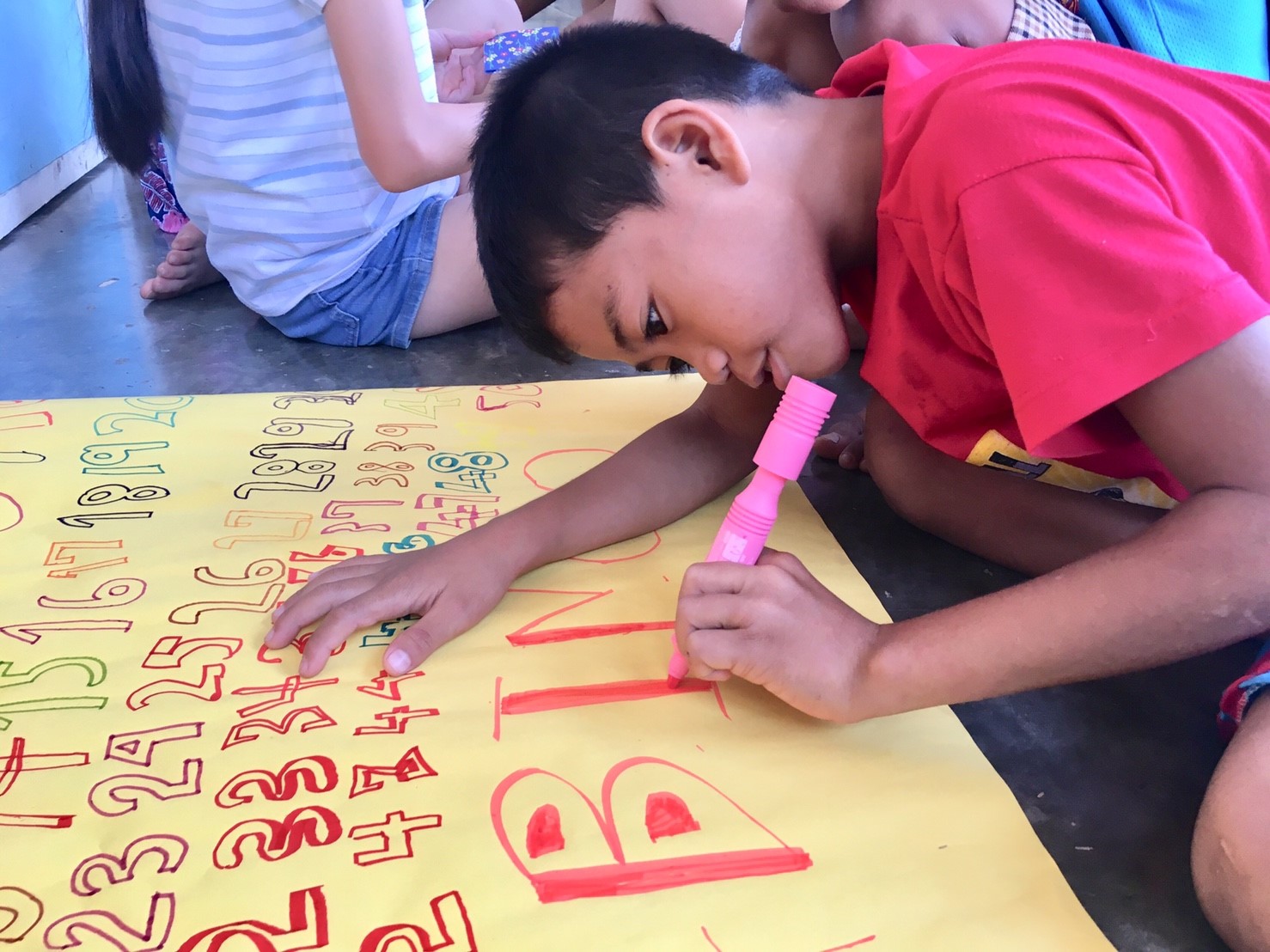 大きいナンバーシートを作っているのはジャンジャン。もちろんジャンジャンだけが作っているのではなくて、みんなで1つずつ好きなように数字を書いていきます。カラフルな色で子供らしくてなかなかいい出来栄えですね!