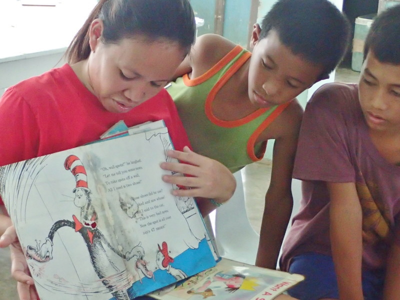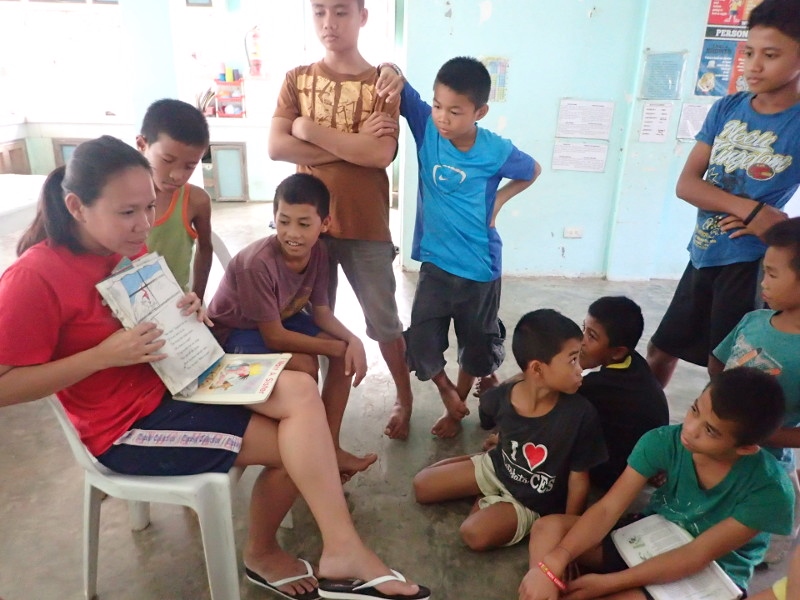 日曜日。こどもたちが集められて、ソーシャルワーカーのエイプリルによる読み聞かせが行なわれてます。