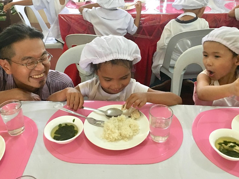 食事の前には保護者たちのボランティアによる手洗い指導。