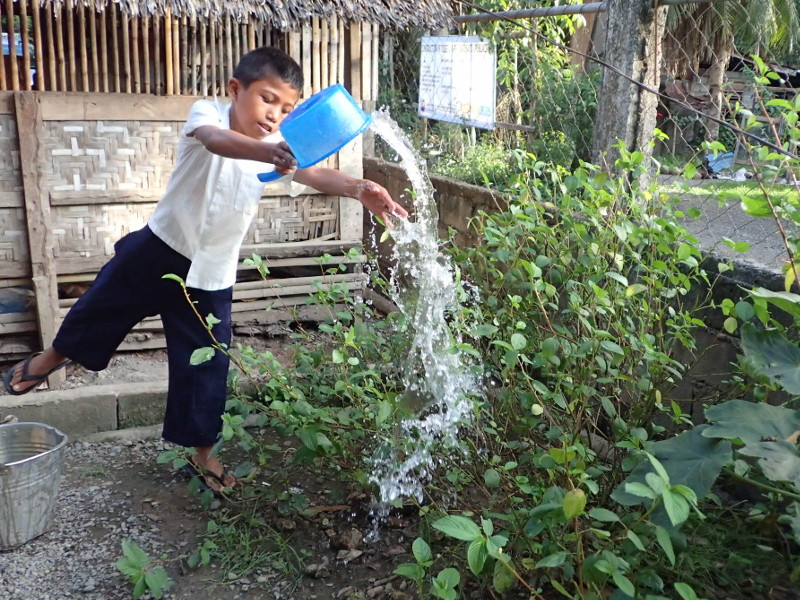 ここのモロヘイヤへの水やりはジェレミーの担当。