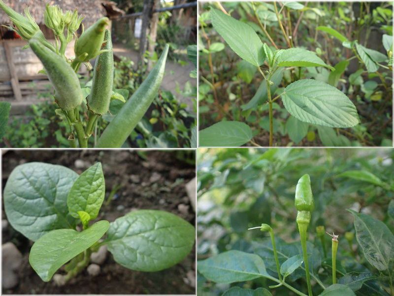 オクラ、モロヘイヤ、ツルムラサキ、そしてシマトウガラシなどが大豊作です。