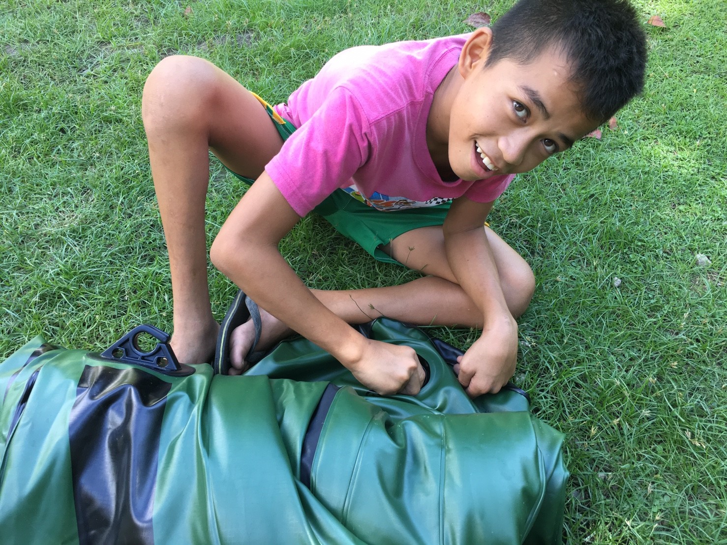 洗足教会の方々が寄付してくれたゴムボート、火事の火の粉で穴が空いていたのを修復できたので久々に登場!