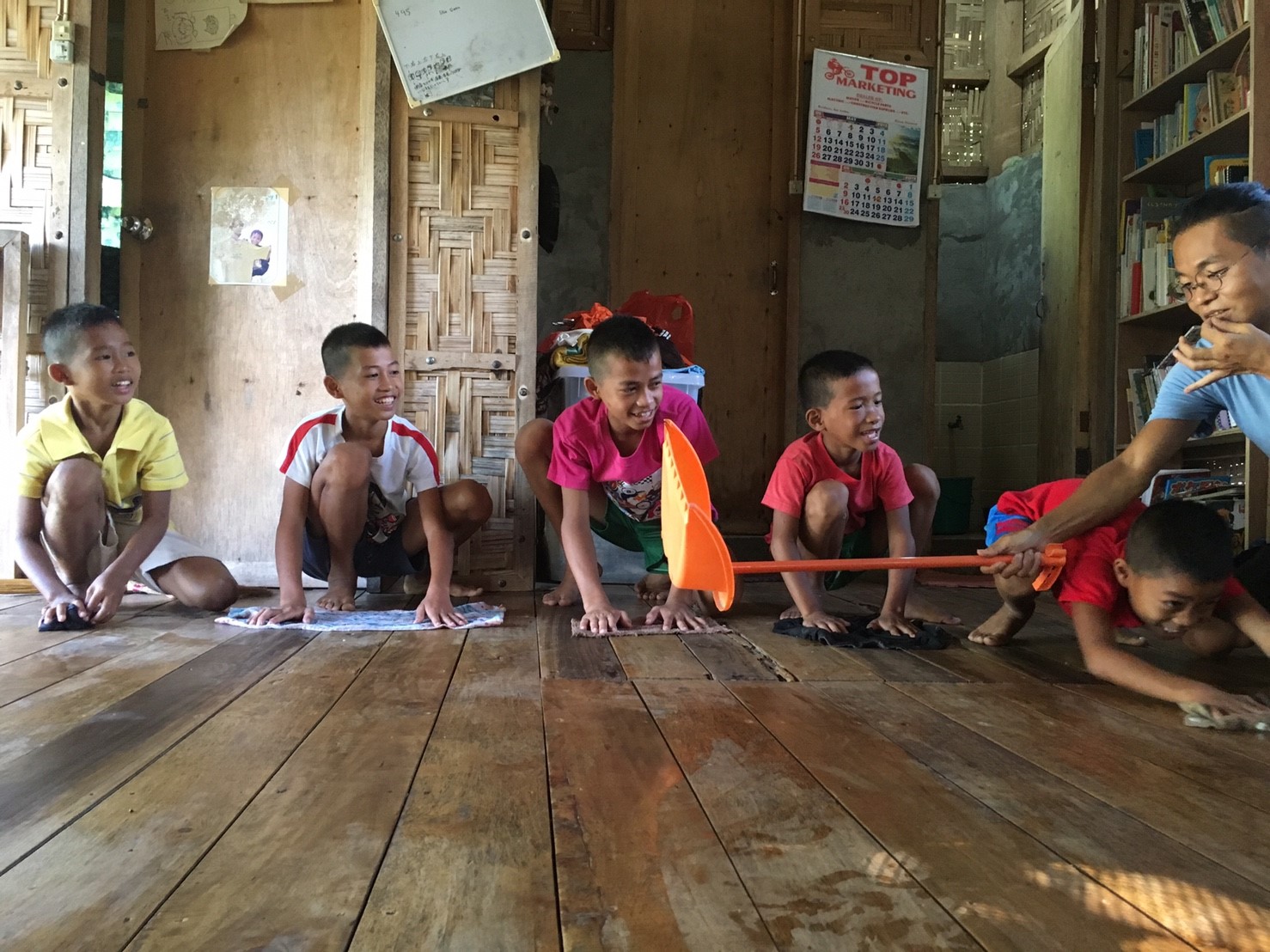 なんだかんだ大掛かりになった掃除でしたが、最後はみんなで雑巾がけレース!おっと、この写真はジャンジャンがフライングしていますね(笑)