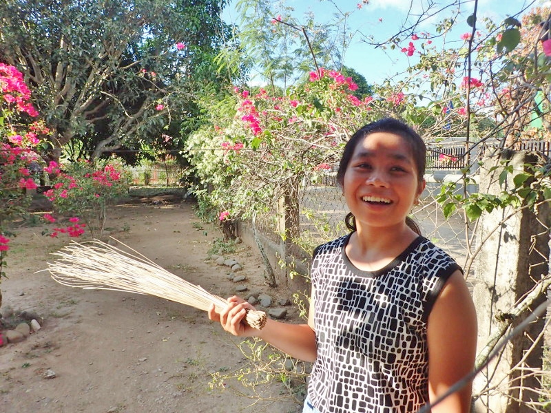 もどってきてさっそく敷地のそうじのお手伝い、なのはさすがHOJのこどもたち。