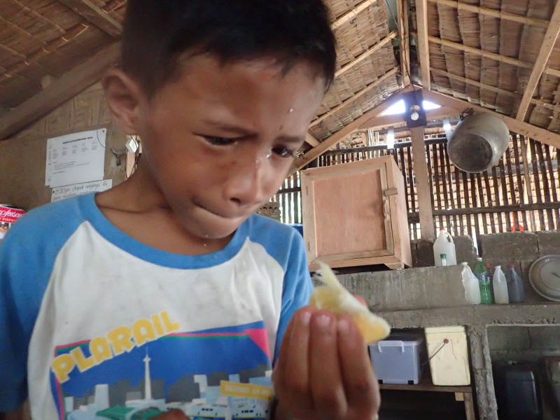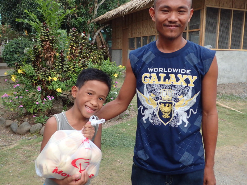 いつまでも僕に興味津々でついてきてくれる子供たちに、町でやや無理に売りつけられたマンゴーをあげるととても喜んでくれました。