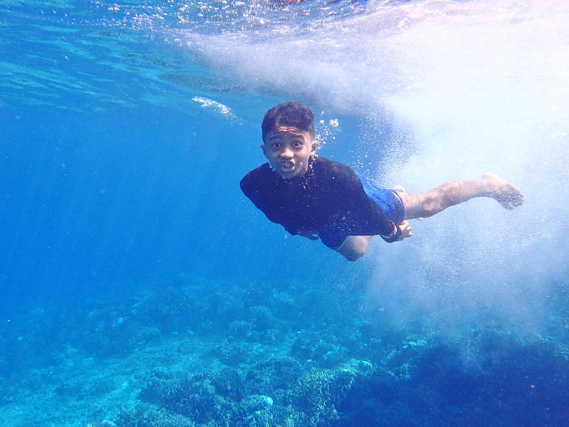 昨日は教会のお手伝いで一緒に海には来れなかったジェイエムが今日は大はしゃぎです。