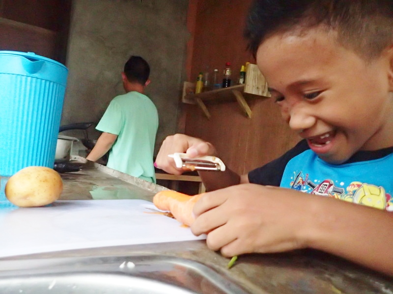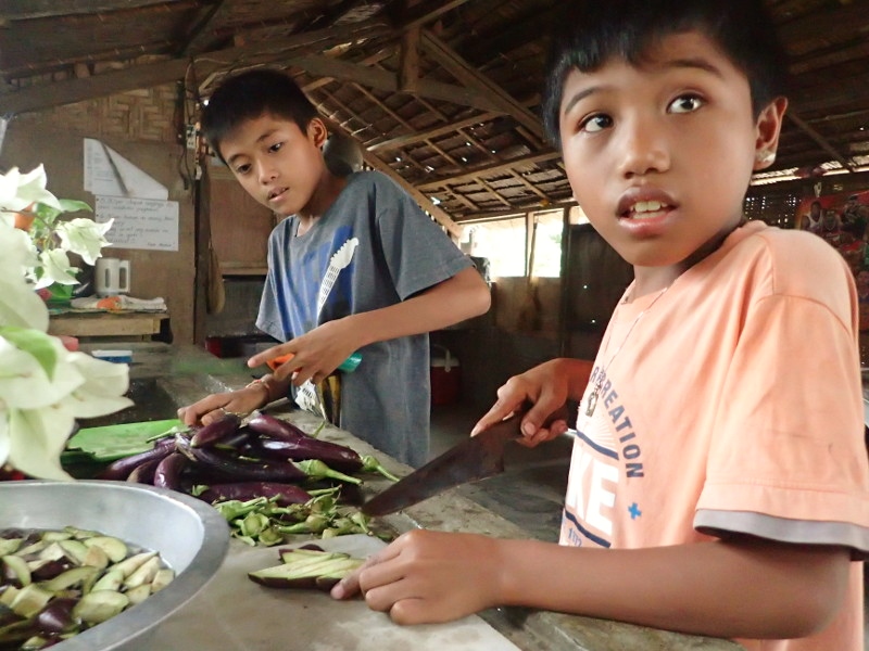 もどってきた子たちがさっそく率先して料理をしてくれてます。