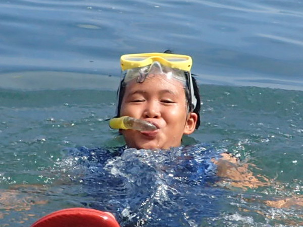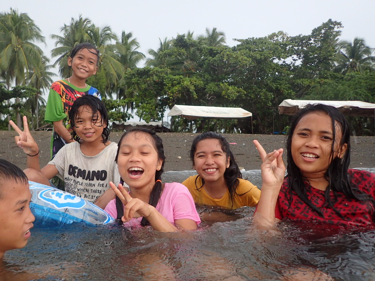 女の子たちは「今なら泳いでも日焼けしない!」と海で大はしゃぎしていました。お年頃ですねえ。