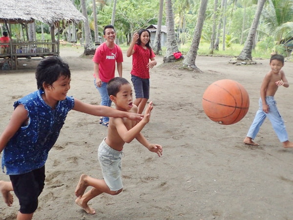 男の子たちは転げまわって「泥んこバスケ」を楽しみ、