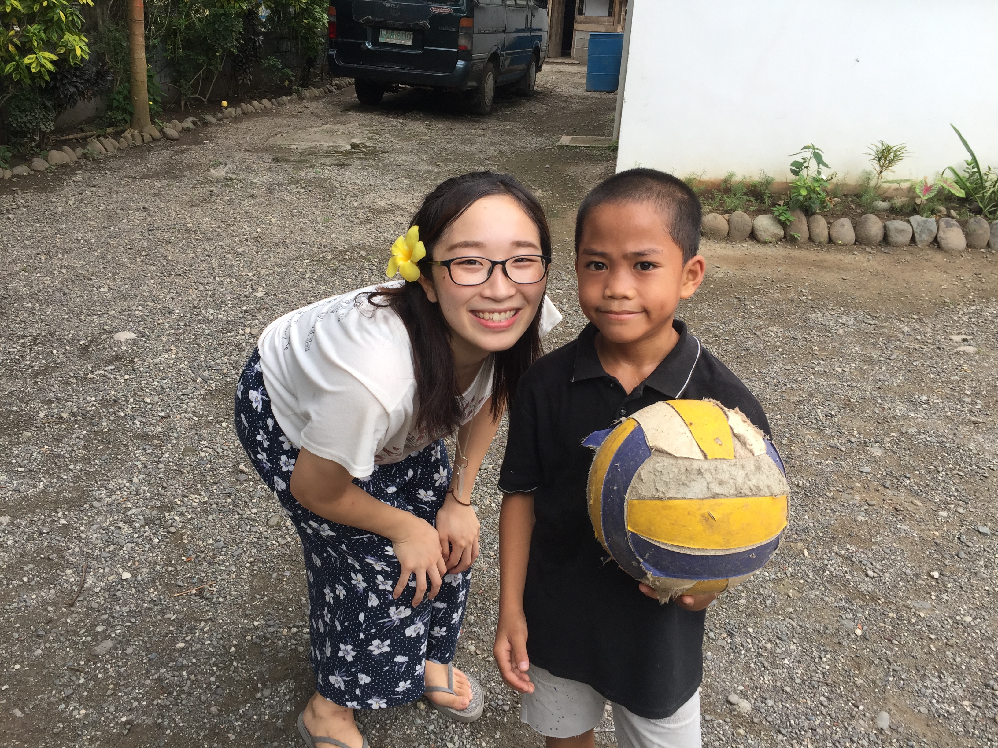 メグミさんの耳にかかっている花をプレゼントしたのです。なんともロマンチスト!そしてドヤ顔!