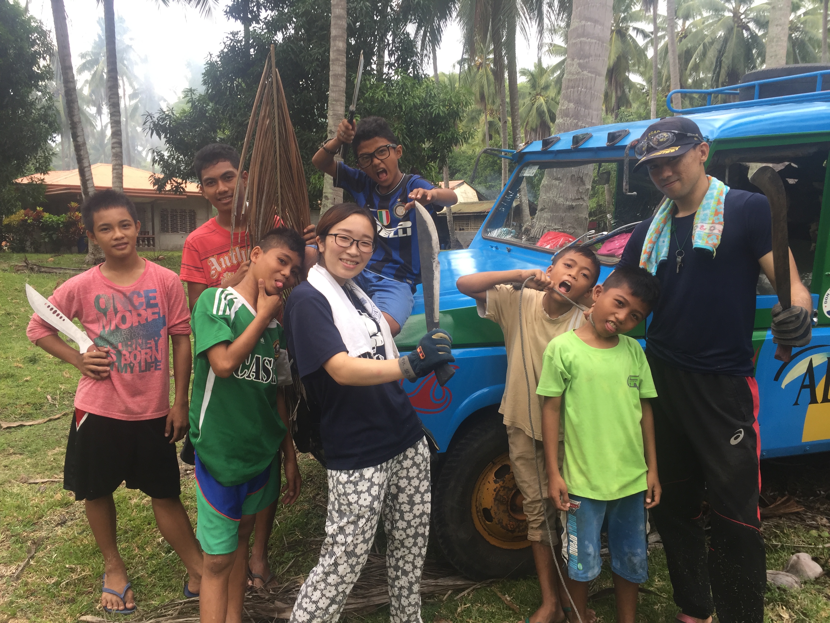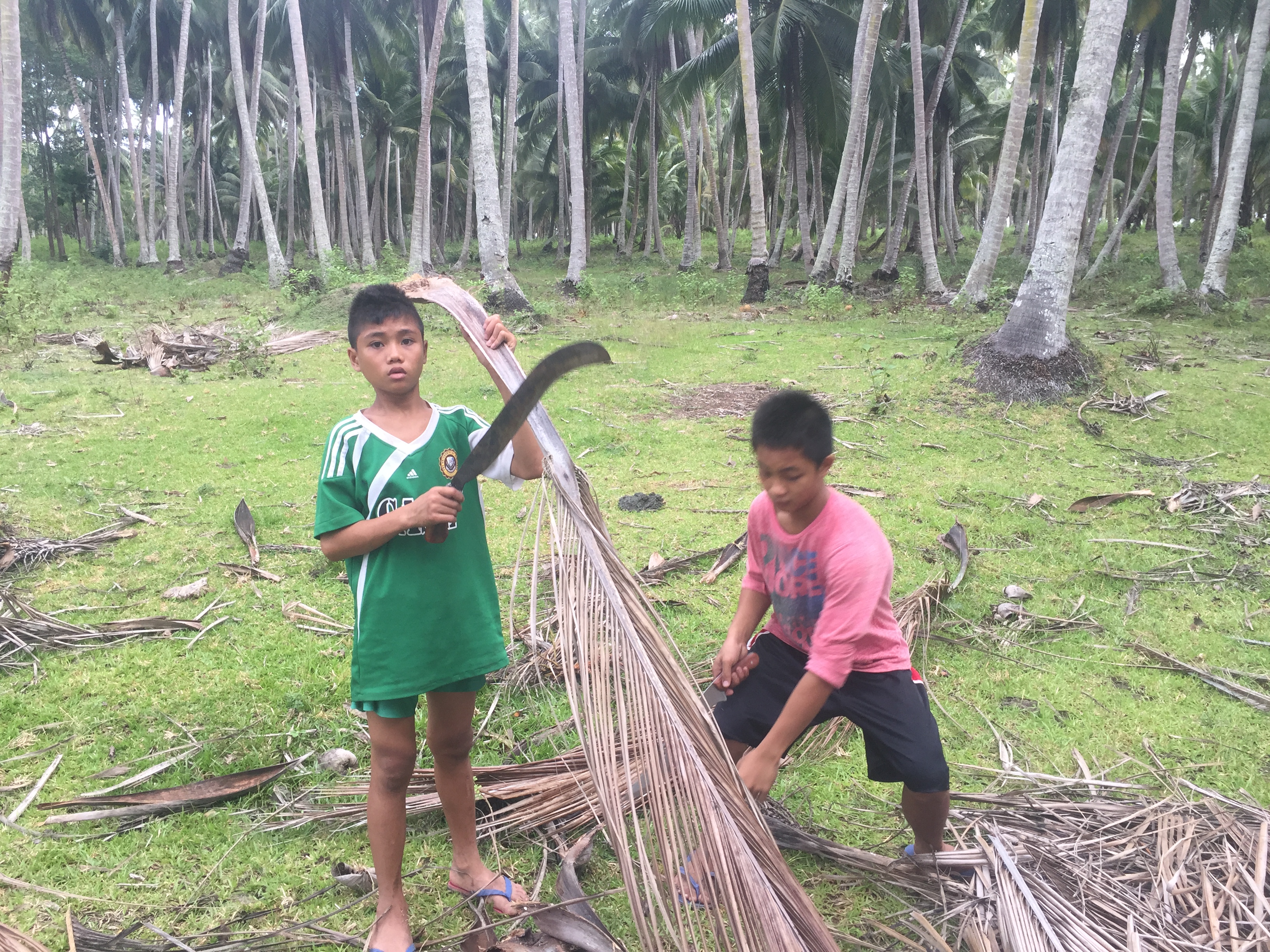 さっそくヤシの葉を集めて作業開始です!