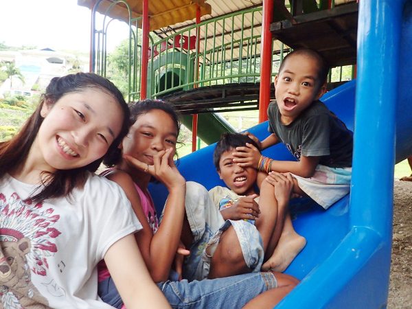 滑り台でケラケラ笑いながら遊んでいて、とても微笑ましいです。