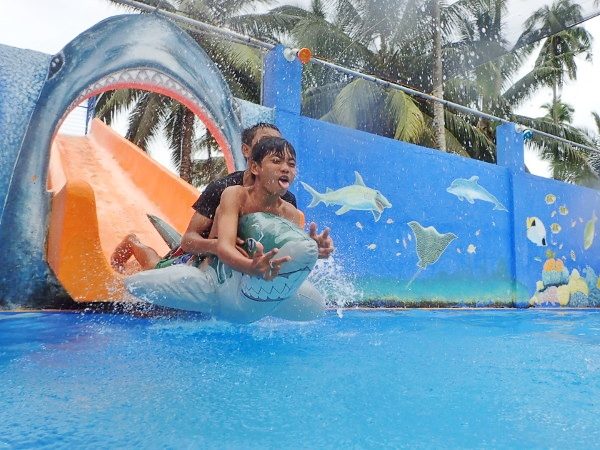 ウォータースライダーに一番はしゃいでるのは誰か、探してみてくださいね。