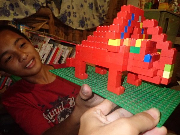 ハルナさんがくれたミニチュアレゴでジェレミーが設計図通りの猫を作りましたが、