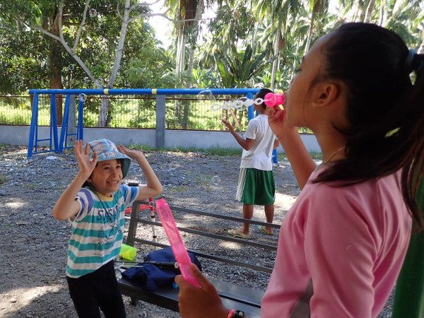 シャボン玉をかたっぱしからつぶす遊びに国境はありませんね。(笑)
