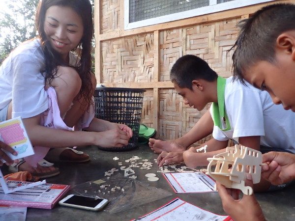 HOJに戻ってきて、午後はハルナさんが持ってきてくれた工作キットにみんな夢中です。