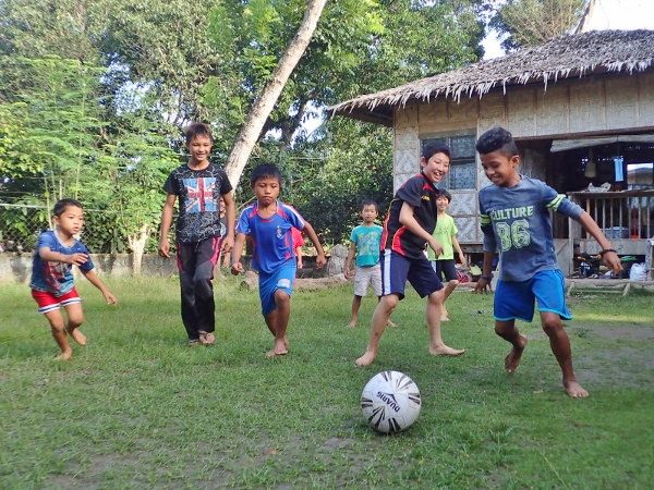 こどもたちは着いて早々サッカーで遊んでます。