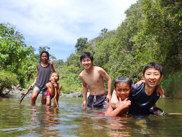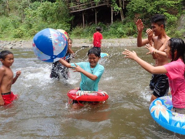 岩から飛び込んだり、生き物を探したり、浮輪で流されて遊んだり、流れに逆らって遊んだり、