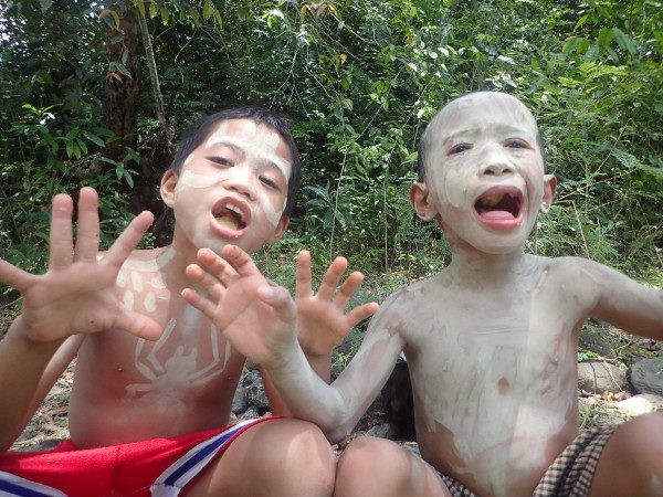 そしてやっぱり渓流マプティといえば、石を削った「岩絵の具」で体に模様を描くこの遊び!