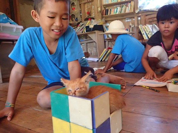 そんなわけでナオキが飼っている子猫の世話をこどもたちがしています。