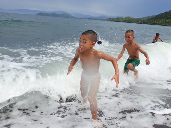 昨日の畑仕事のごほうびに朝からウラワビーチへ!