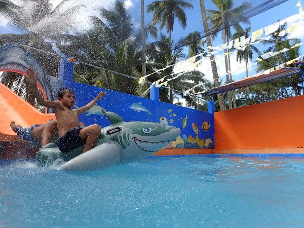 特にこのサメの浮輪に乗って滑ると、摩擦が少ないせいか、ものすごいスピードが出るんです。