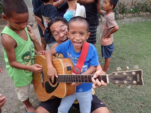 私がギター、ナオキがピアニカ、アイダさんが太鼓を叩いて盛り上げるんですが、