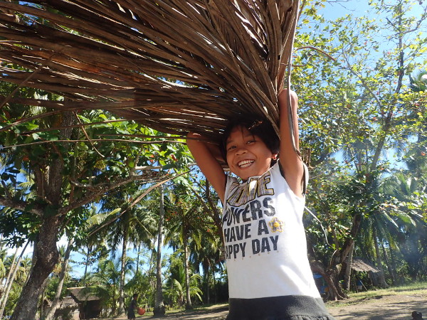 さて、午後から行ったウラワビーチ!まずはキャンプファイヤー用にヤシの枝を集めます。