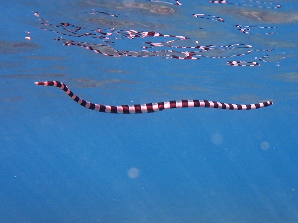 さらに泳いでいると…ウミヘビが現れました!危ない?!