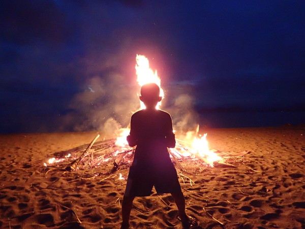 そしてお待ちかねのキャンプファイヤー!砂の上を転げまわって踊って楽しみました。