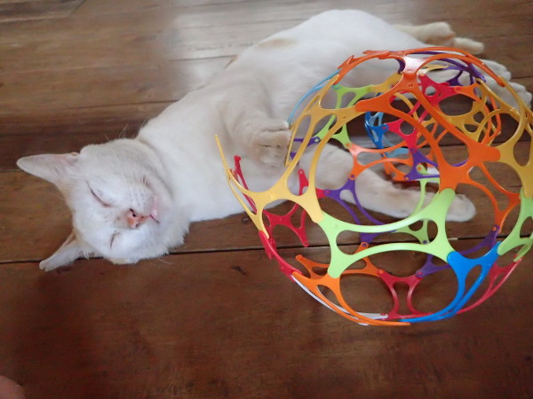 さっそく作ってみたボールには猫も大満足。たっぷり遊んでそのまま寝ちゃいましたよ。
