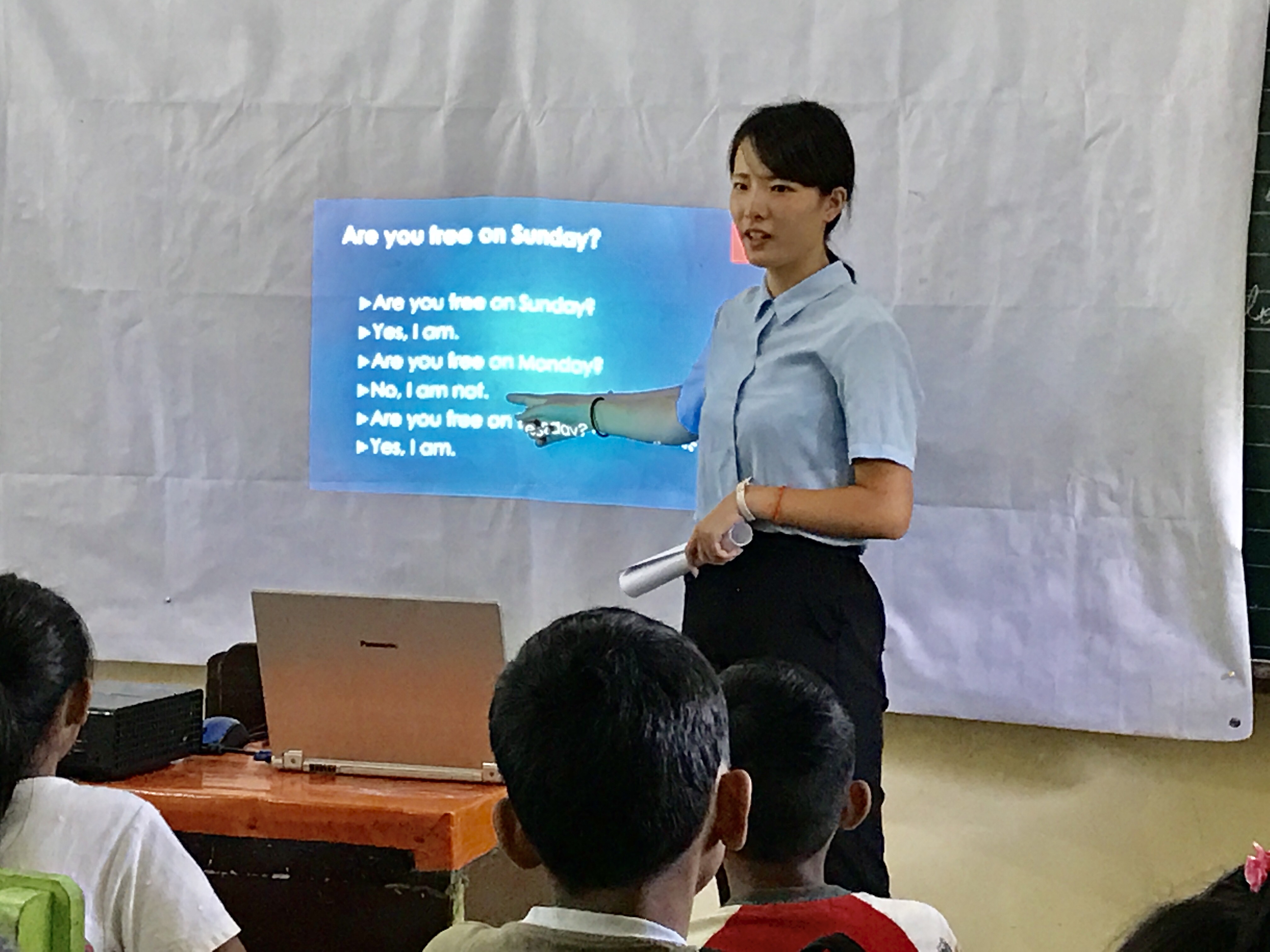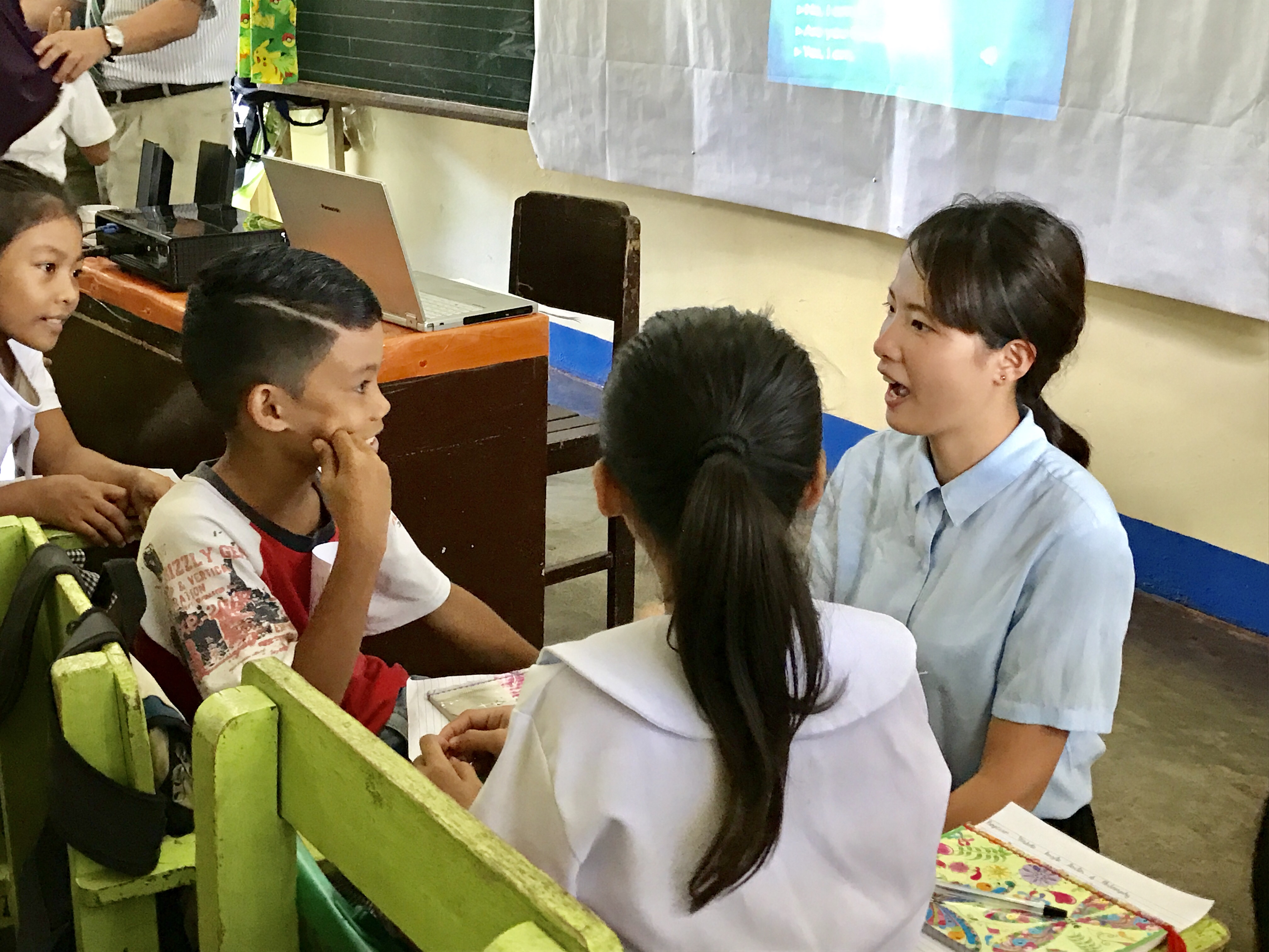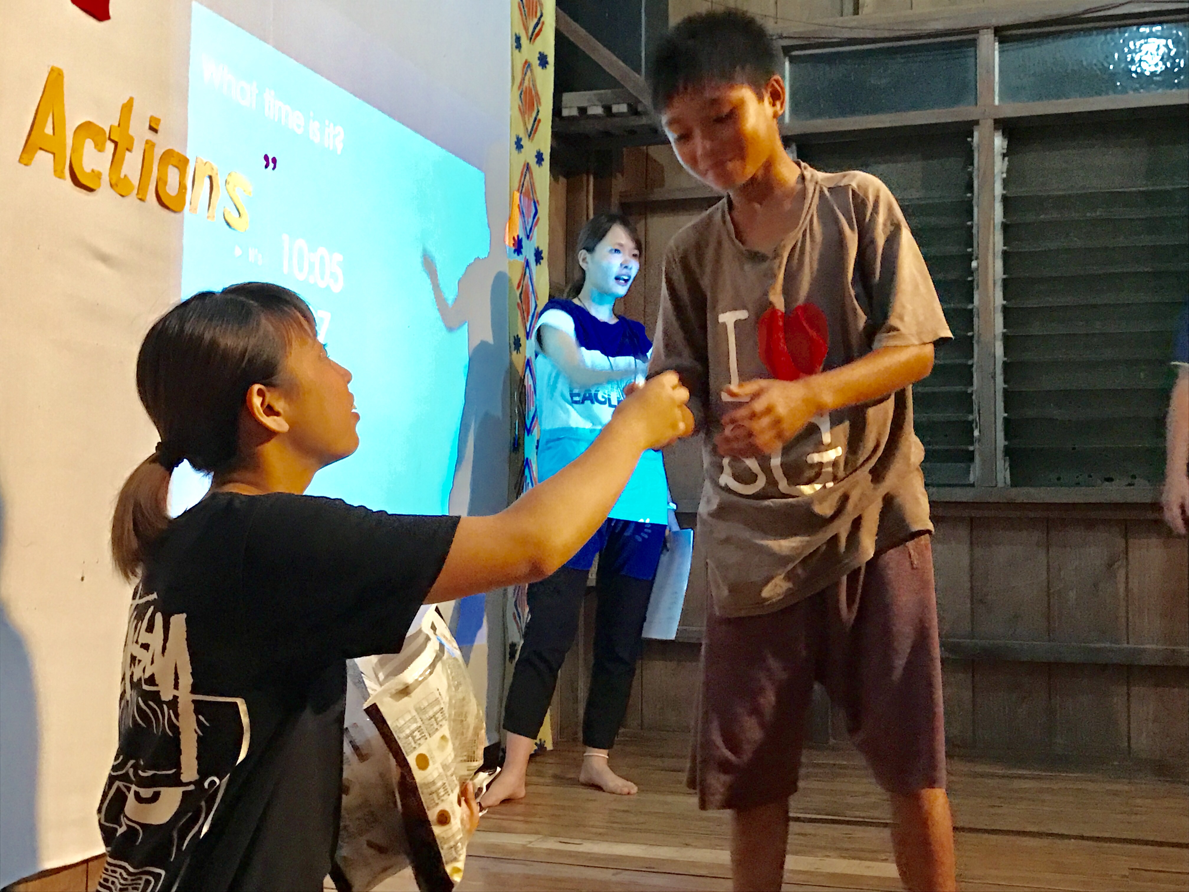 1人1人発音をチェックして、上手に言えた子どもには日本から持ってきてくれたお菓子をプレゼントしてくれました。