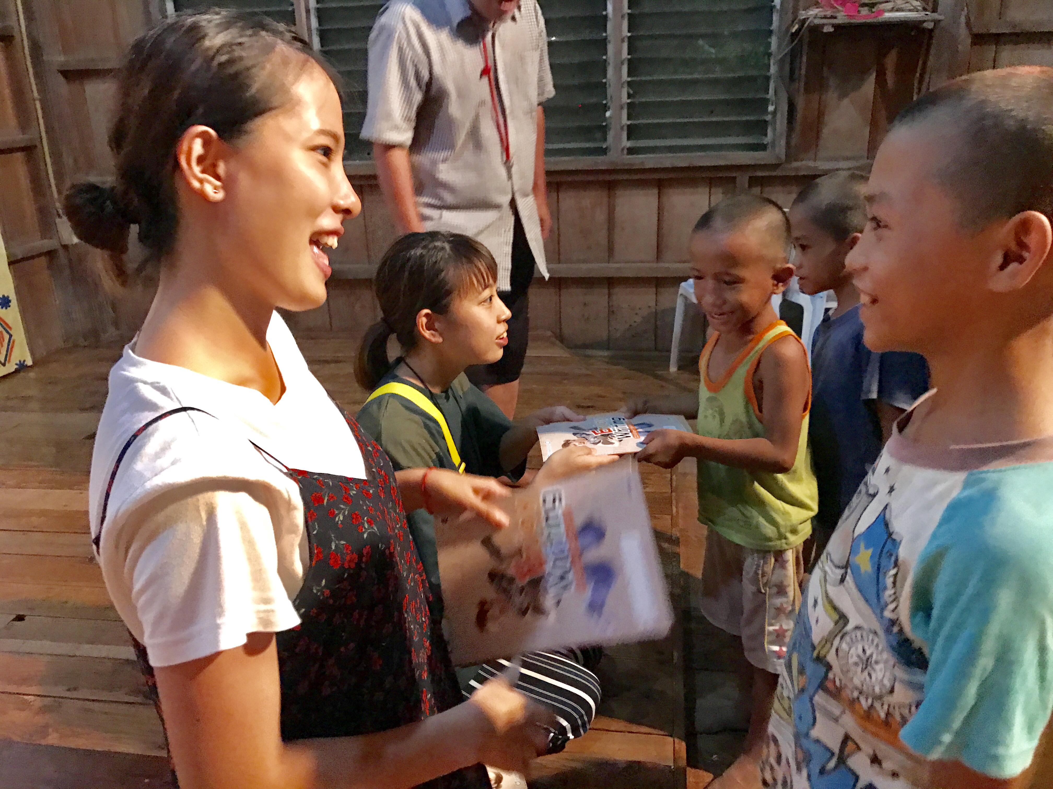 夜は日本福祉大の学生さんが子どもたちにノートのプレゼントをしてくれました。