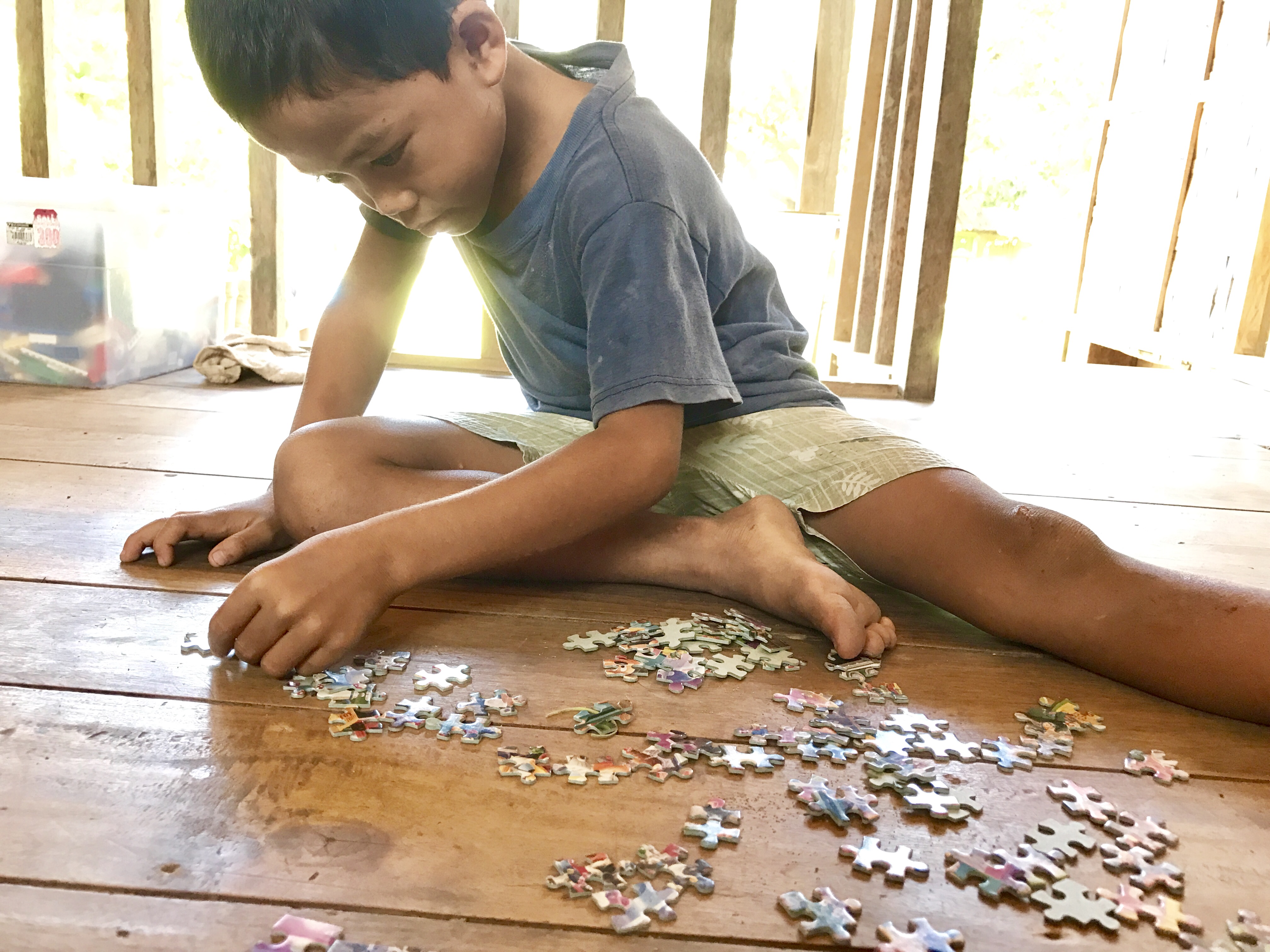 今日もバスケをしている男の子たちを横目に1人もくもくとパズルに集中していました。