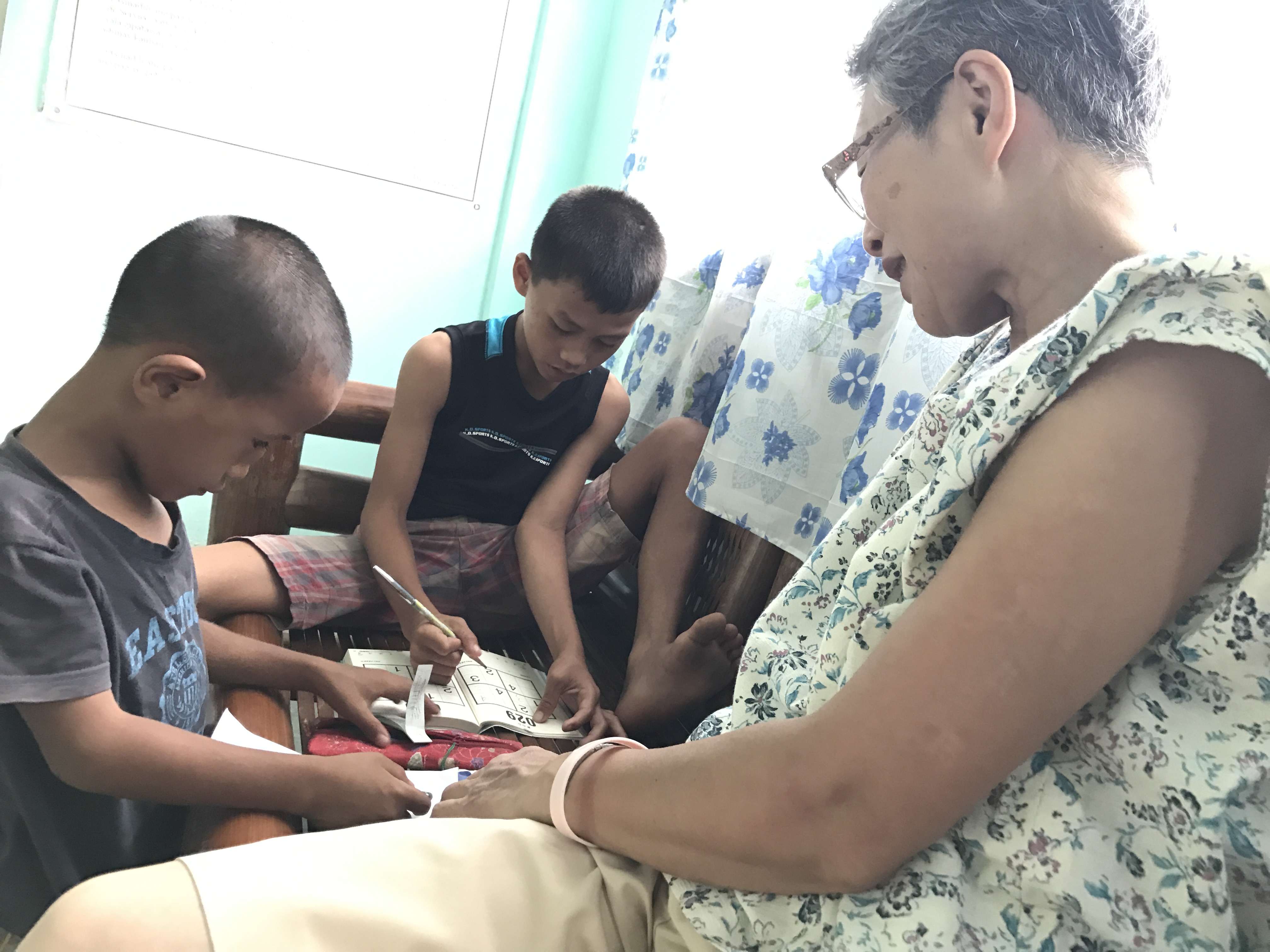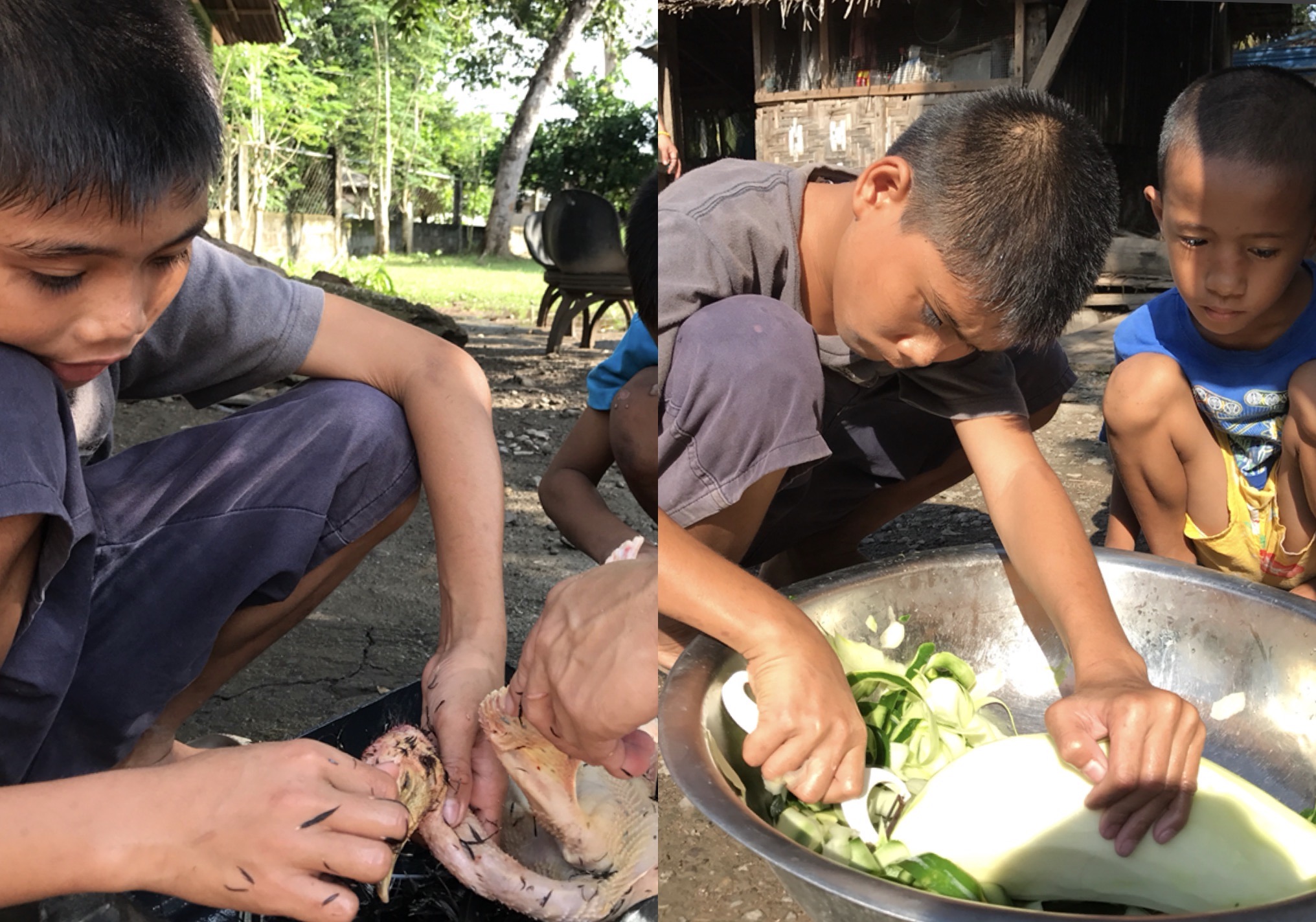 今日も鶏の前処理やパパイヤの皮むきを手伝ってくれていました。