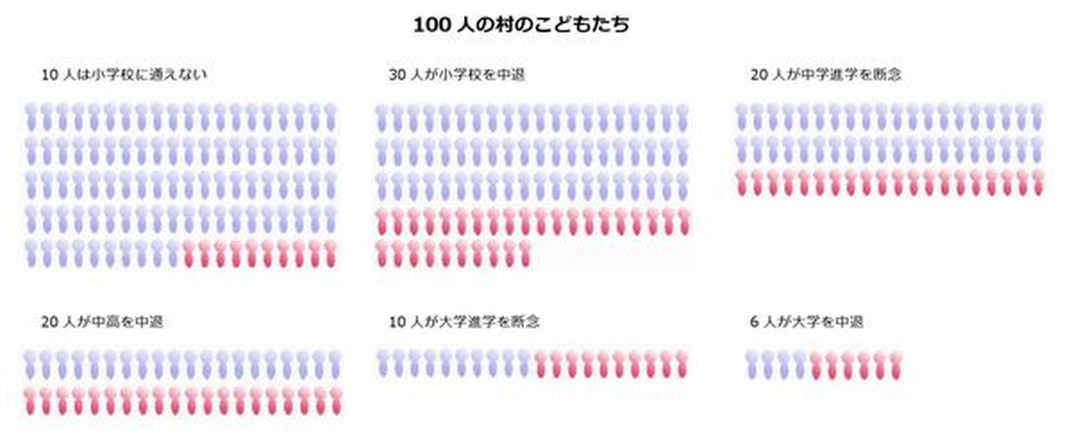 役所のデータによれば、大学を卒業できるのは、こどものうちの4%にすぎません。