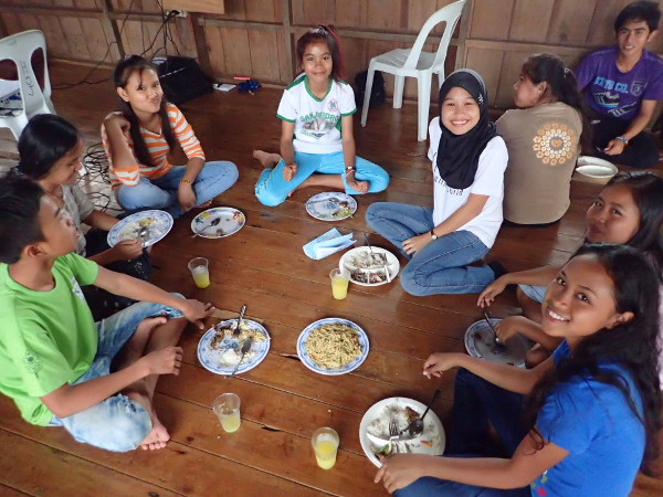子どももスタッフもみんなでコンベンションホールで一緒にご飯を食べました!